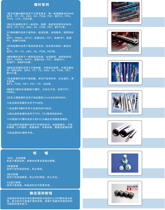凭借在塑料机械行业多年的经营,与国内一流的塑料机械配件供应商多年的合作,我们可以提供多数设备的原厂配件和升级配件。